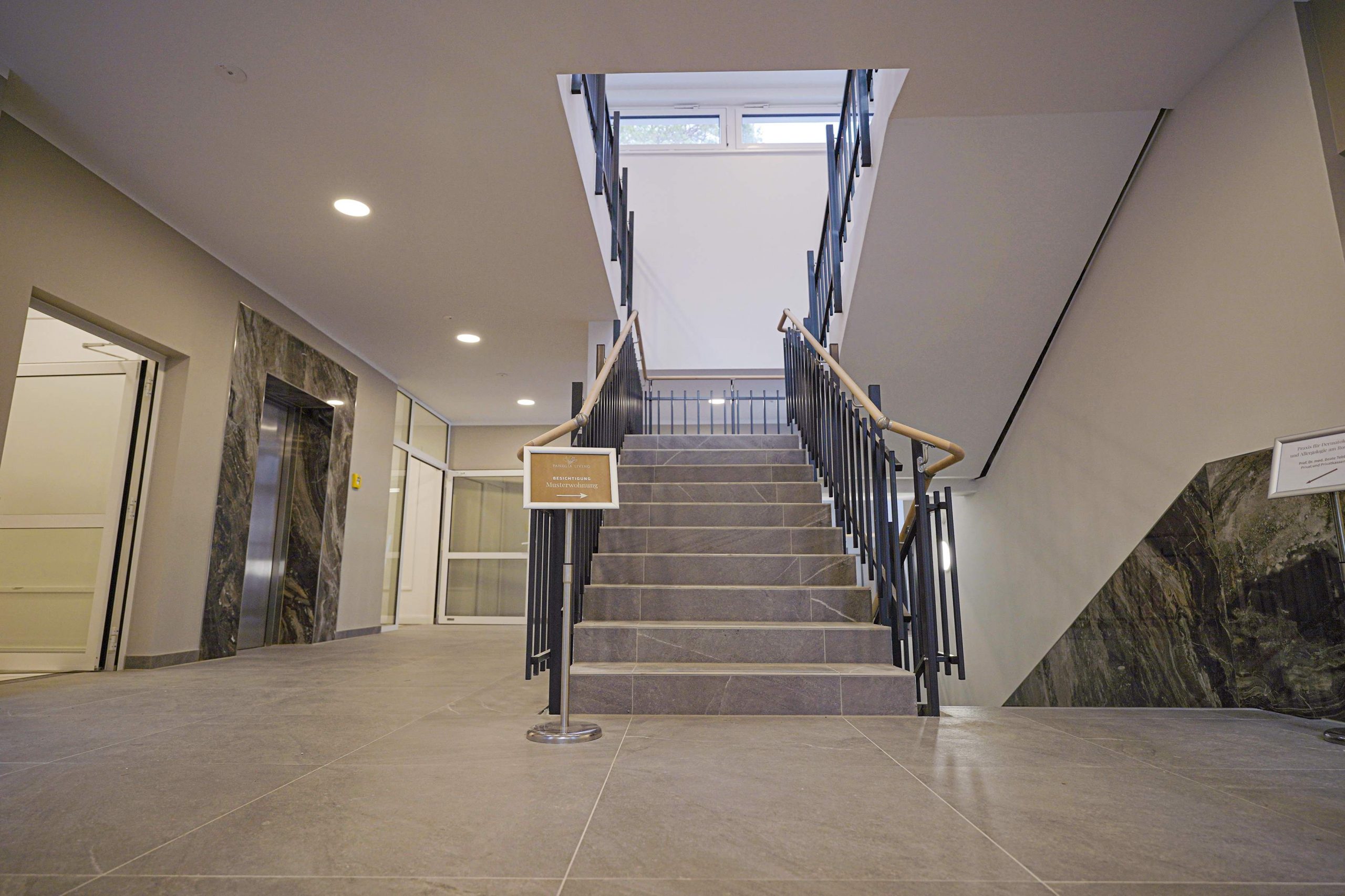 Erdgeschoss: hier treffen Sie Ihren treuen Concierge, stillen Ihren Hunger im Bistro und entspannen mit Ihrer Familie, Ihren Freunden oder anderen Bewohnerinnen auf der Terrasse oder im Garten.